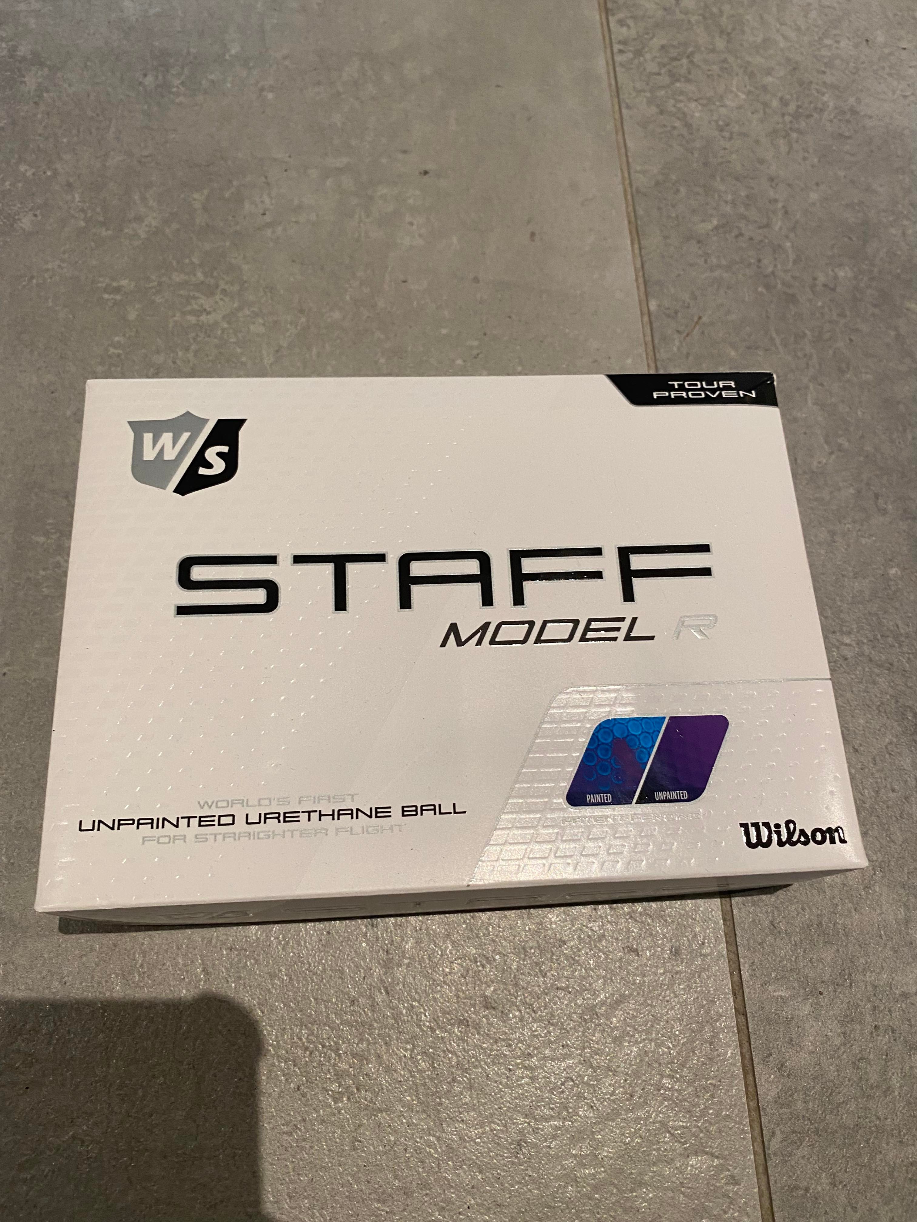 Wilson Staff Model R er en tourbold med en ubehandlet overflade, som giver meget spin og kontrol, mens bolden samtidig leverer en høj boldhastighed.