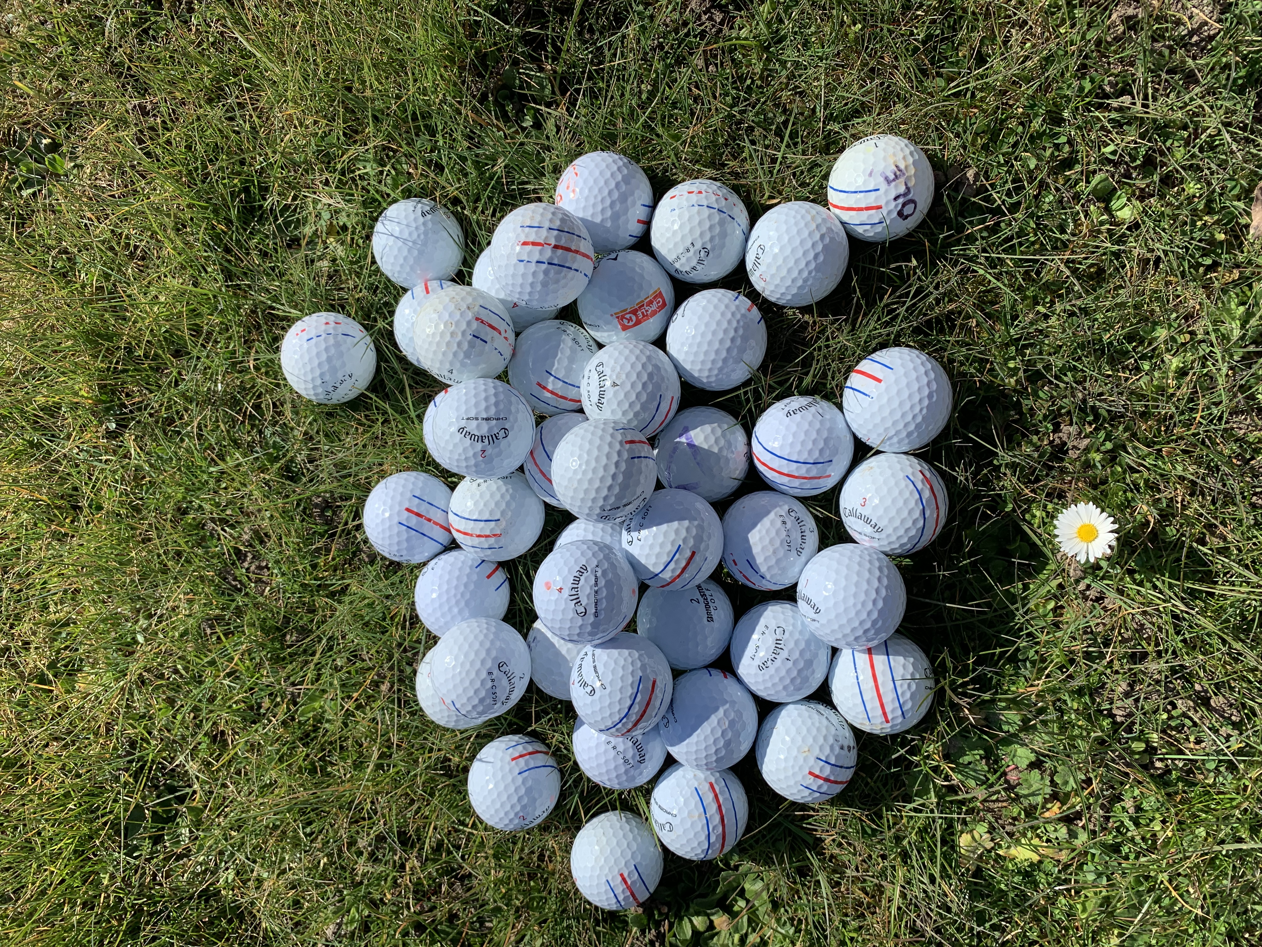 • Farvede golfbolde blandet af søbolde grade A-AAA