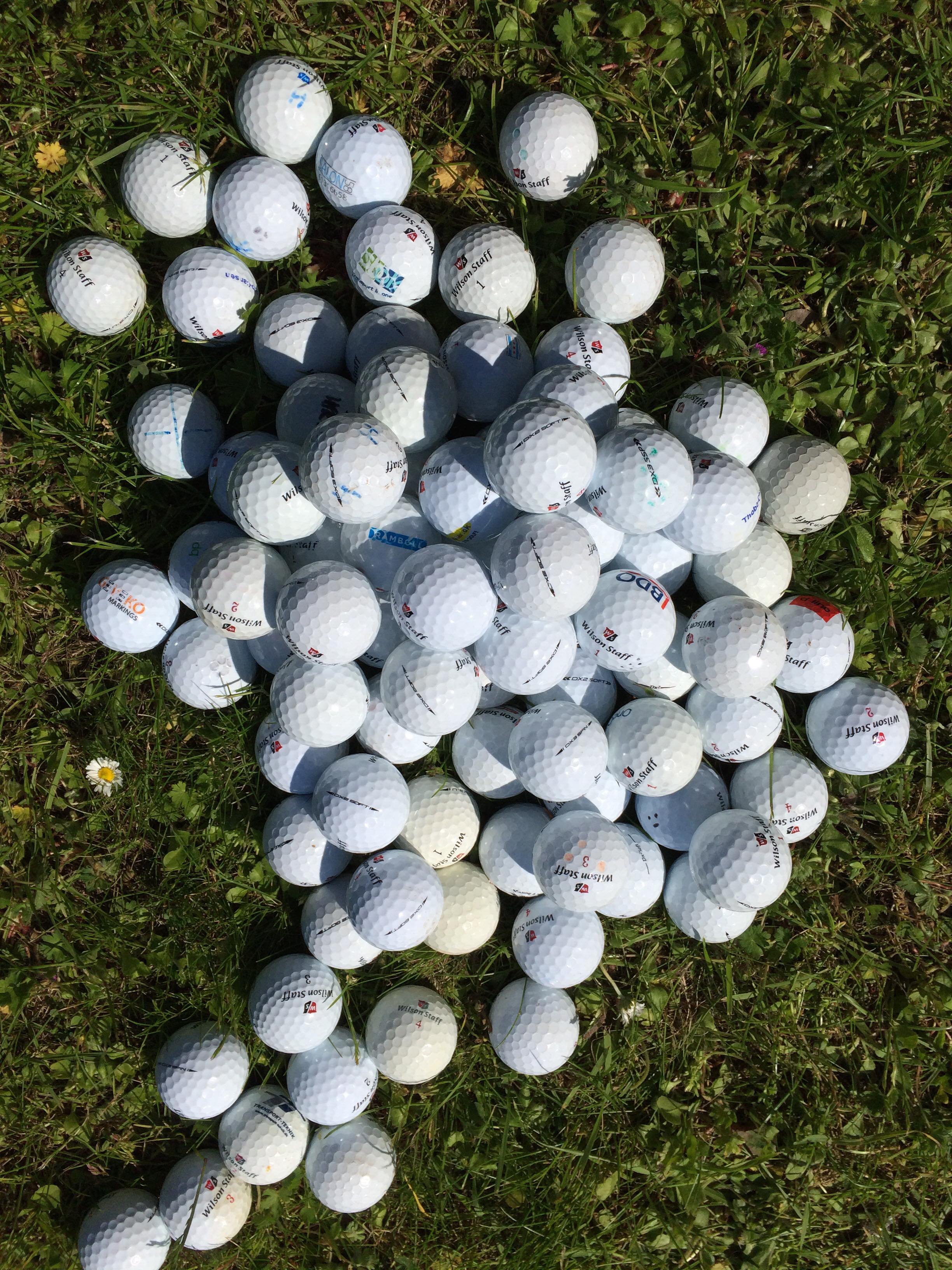 • Farvede golfbolde blandet af søbolde grade A-AAA